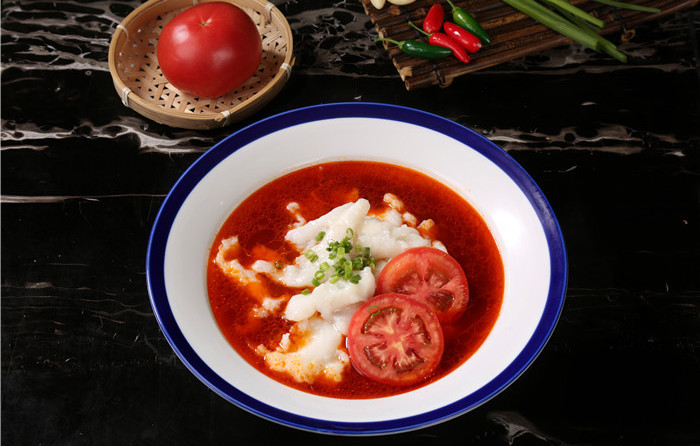 原味番茄湯調料150克(或番茄濃湯調料70克),開水500克,鹽、味精、蔥姜水,蛋清、生粉適量